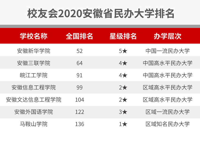 原文題:校友網全國民辦大學排行榜出爐,安徽新華學院省內六連冠!并連續三年穩居中國一流民辦大學行列